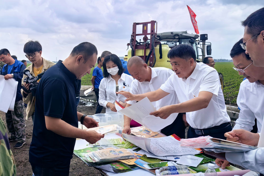 黑龍江省農(nóng)業(yè)農(nóng)村廳種植業(yè)管理處工作人員在哈爾濱市雙城區(qū)地頭,向農(nóng)民發(fā)放科學(xué)用農(nóng)藥資料(2023年6月11日攝)。學(xué)習(xí)貫徹習(xí)近平新時代中國特色社會主義思想主題教育工作會議召開以來,黑龍江省農(nóng)業(yè)農(nóng)村廳種植業(yè)管理處將理論學(xué)習(xí)與實際工作相結(jié)合,深入“田間地頭”調(diào)查研究、深入推進“千萬噸糧食增產(chǎn)計劃”,助力黑龍江省當(dāng)好維護國家糧食安全“壓艙石”,將主題教育成果融入到維護國家糧食安全的具體實踐中。