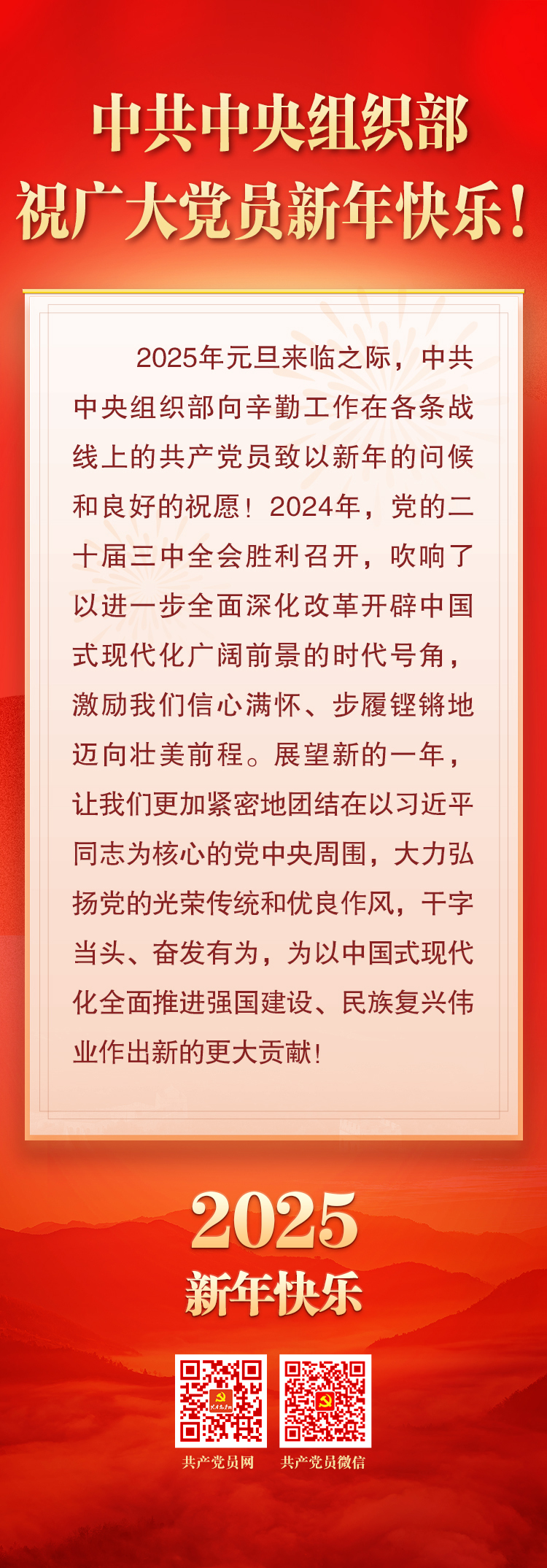 中共中央組織部祝廣大黨員新年快樂!